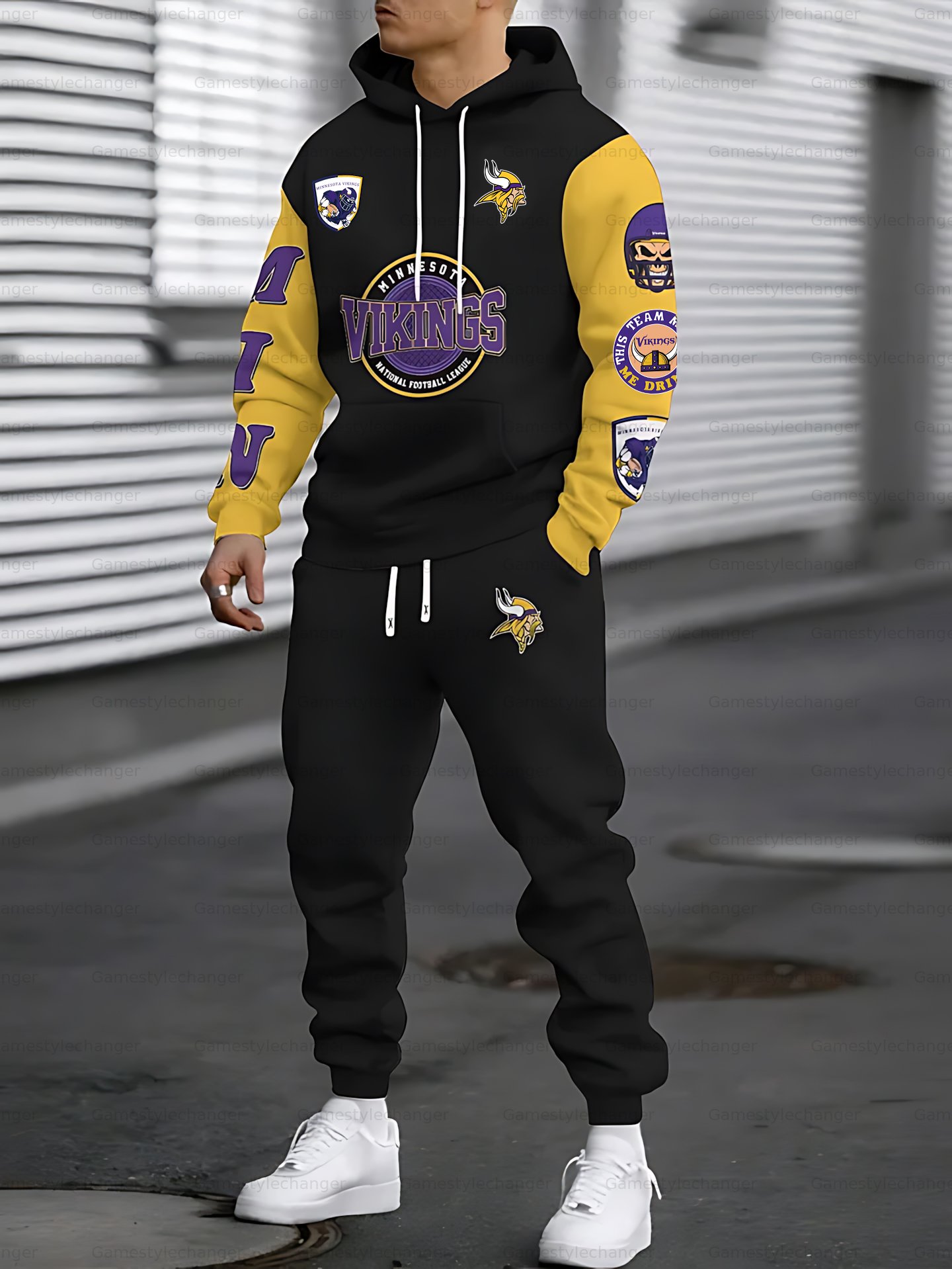 (Fleece-Lined Hoodie) Minnesota Vikings Hoodie & Pants 2 Pieces Set