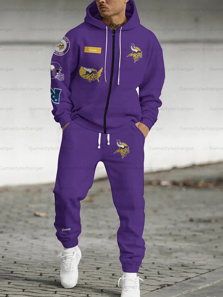 (Fleece-Lined Zip-up Hoodie) Minnesota Vikings Zip-up Hoodie & Pants 2 Pieces Set
