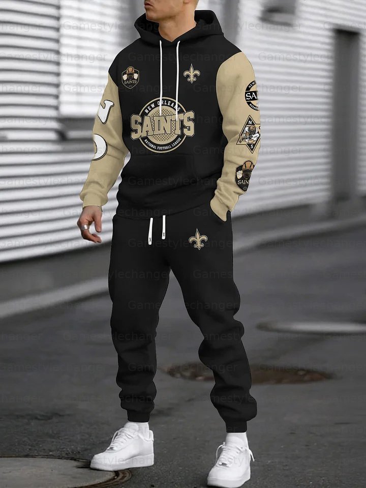 (Fleece-Lined Zip-up Hoodie)New Orleans Saints Hoodie & Pants 2 Pieces Set
