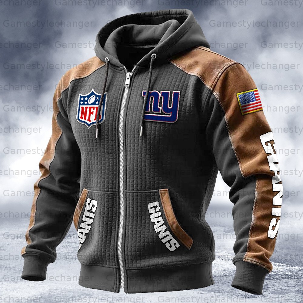 New York Giants Contrasting Shoulder Panels Hooded Zip-Up Jacket
