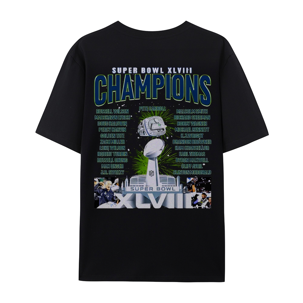 Unisex-Adult Ultra Cotton Washed T-Shirt Graphic SUPER BOWL XLVIII CHAMPS - SEAHAWKS TEE