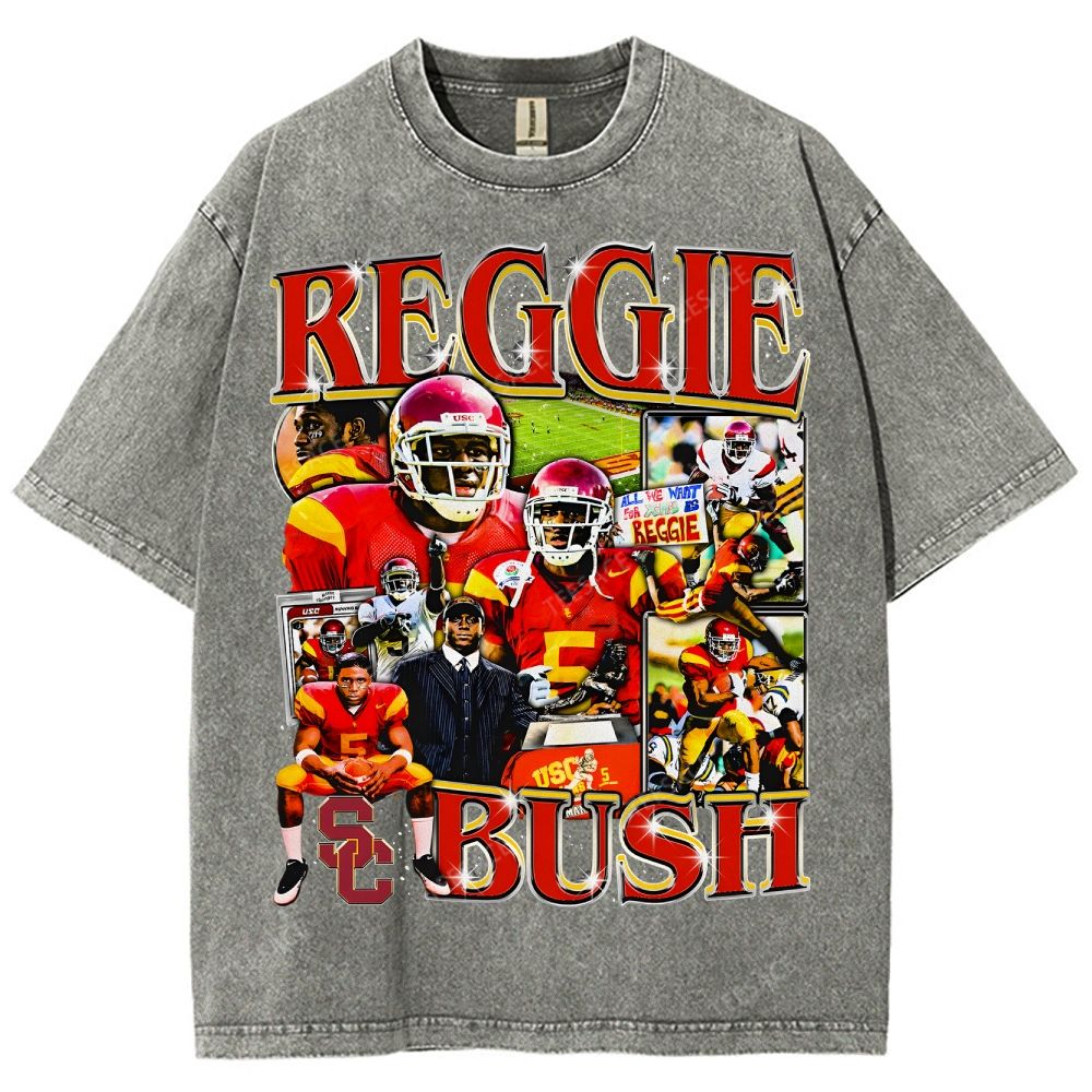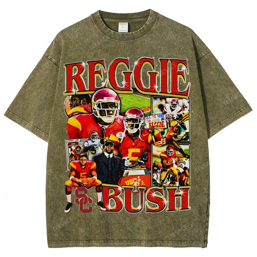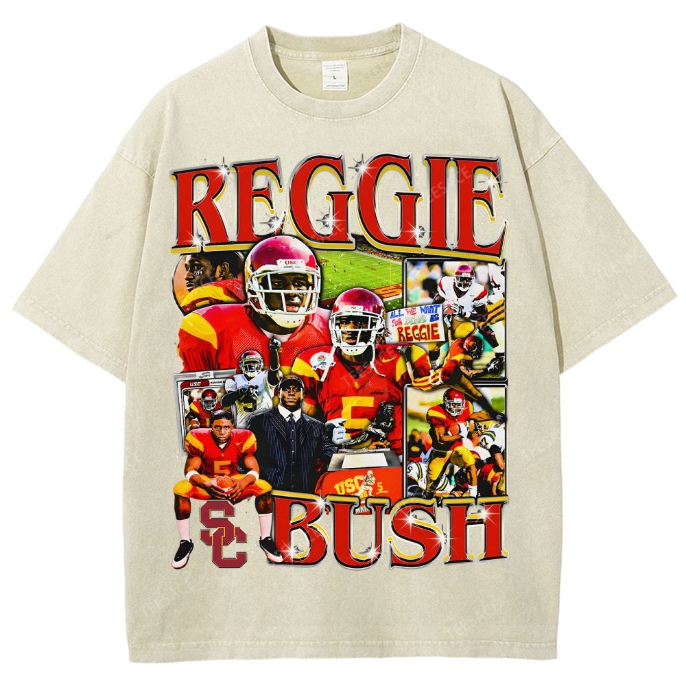 REGGIE BUSH USC Tee Vintage Style Unisex-Adult Oversized Washed Street T-shirt