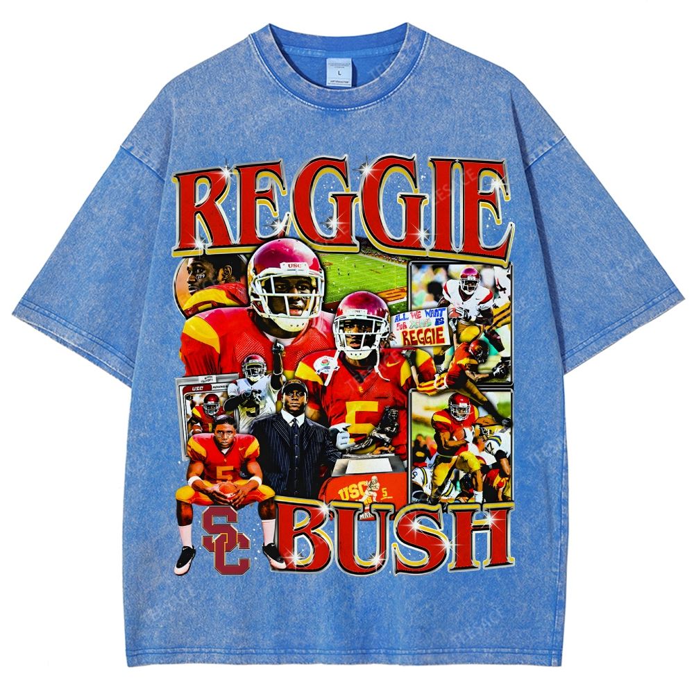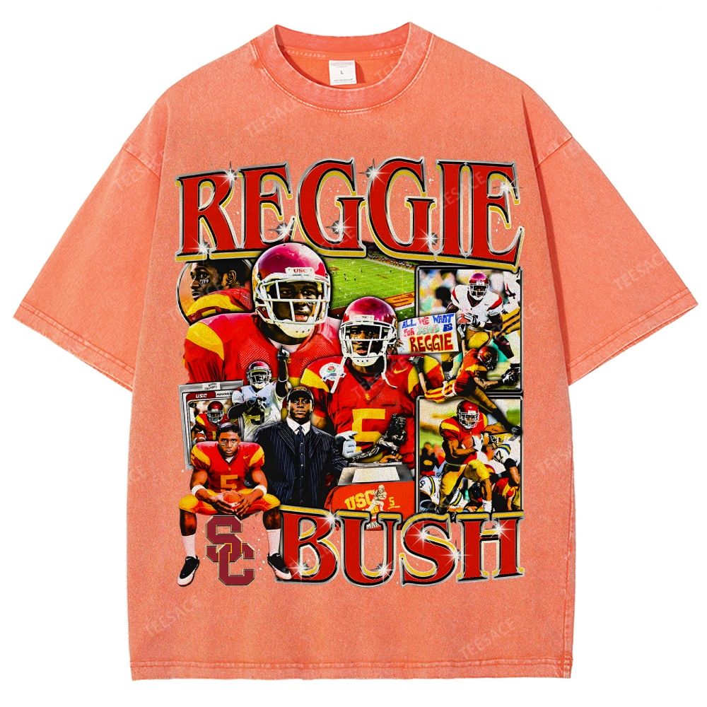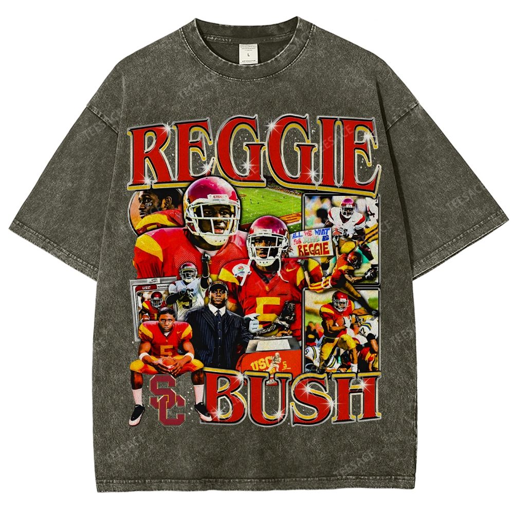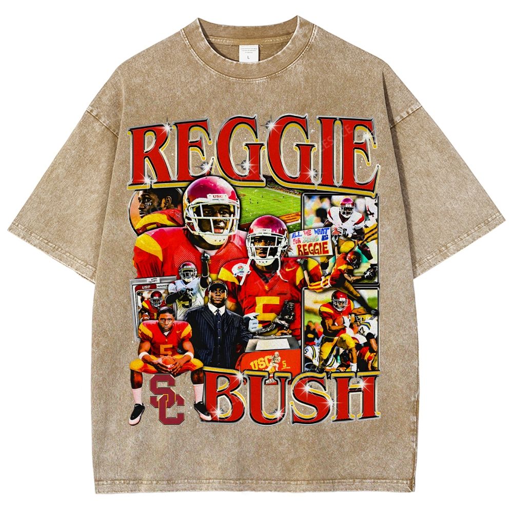 REGGIE BUSH USC Tee Vintage Style Unisex-Adult Oversized Washed Street T-shirt
