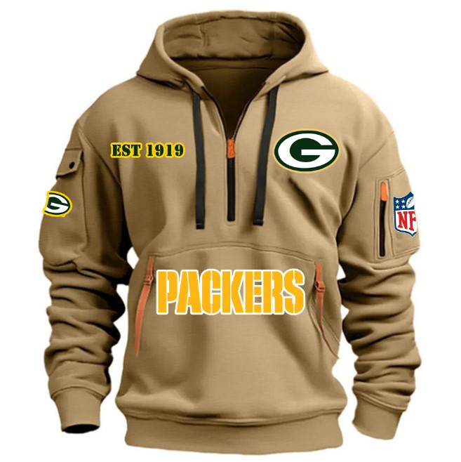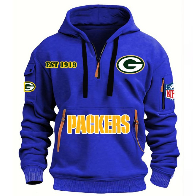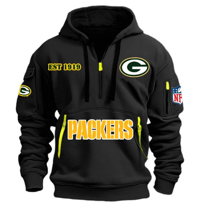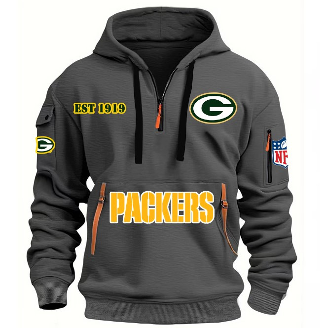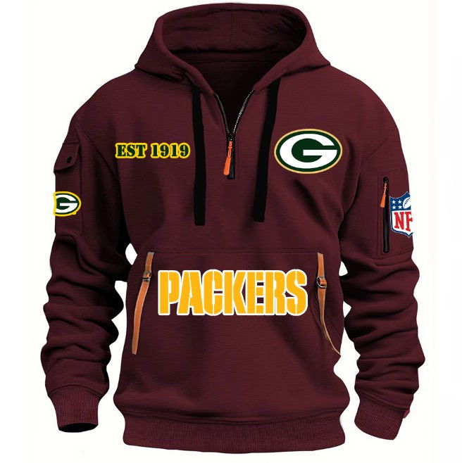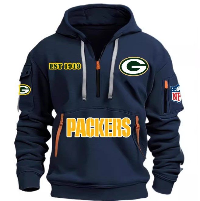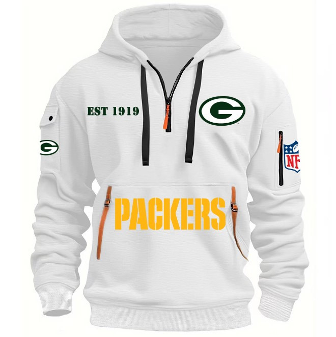 Unisex "Green Bay Packers" Graphic Streetwear Vintage HALF ZIPPER Hoodie