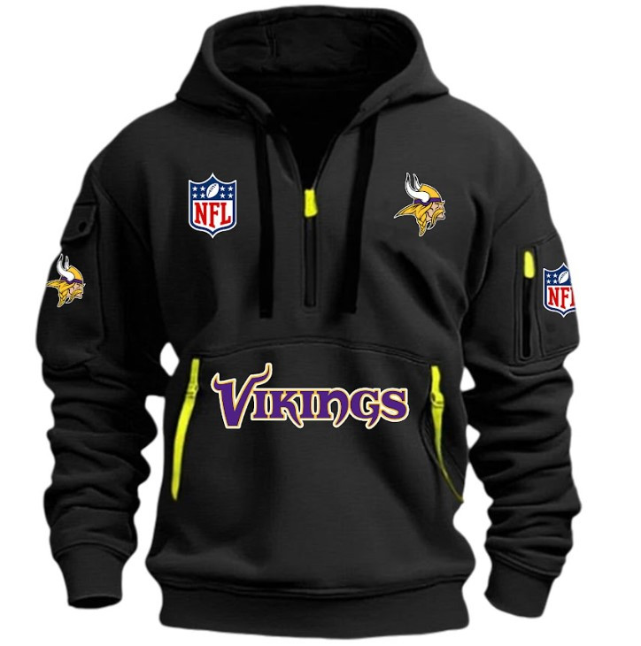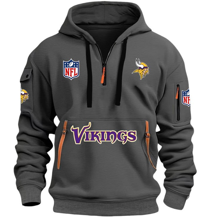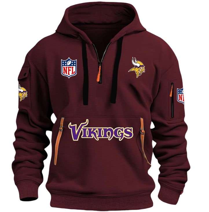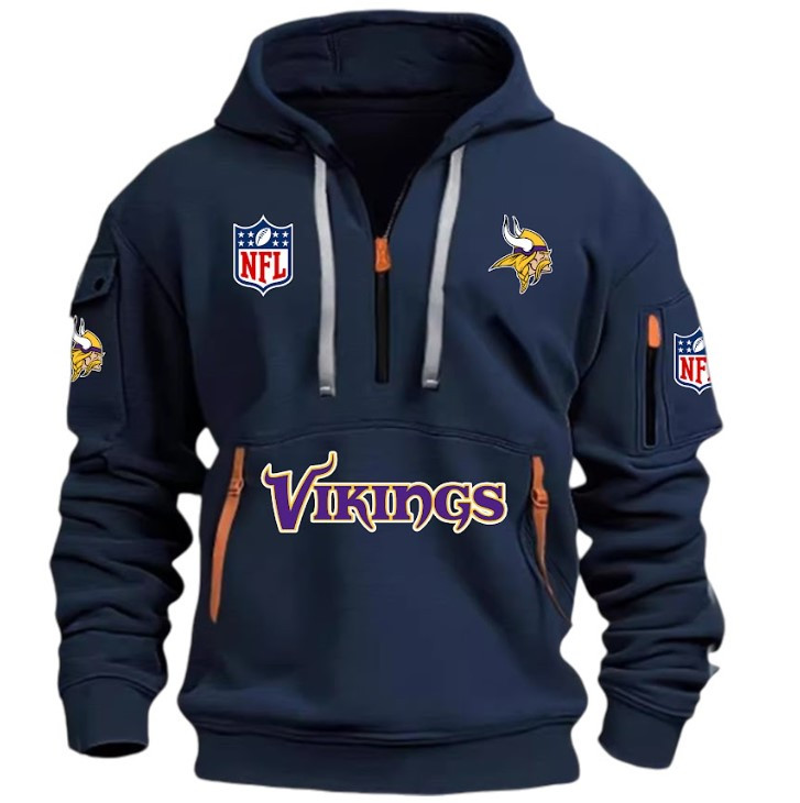 Unisex "Minnesota vikings" Graphic Streetwear Vintage HALF ZIPPER Hoodie